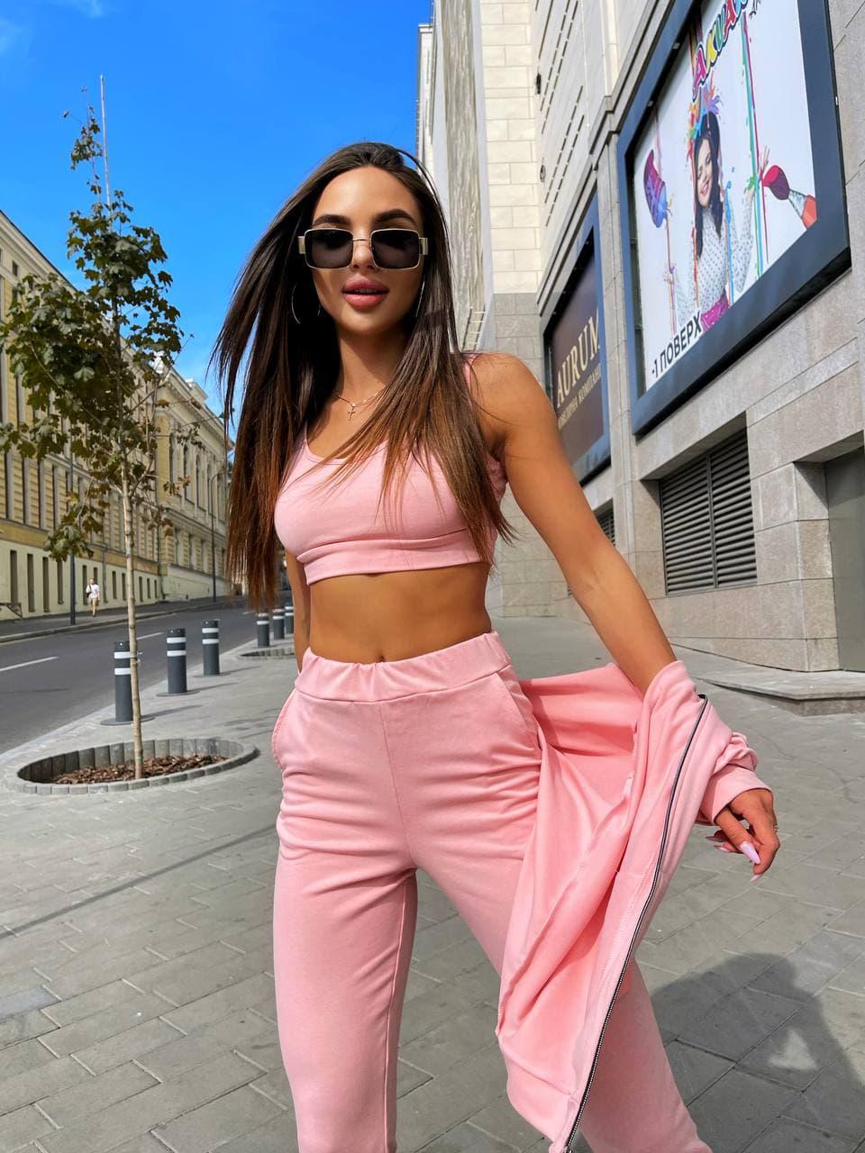 Крутий костюм-трійка штани з високою талією й укорочений топ і кофта на блискавці