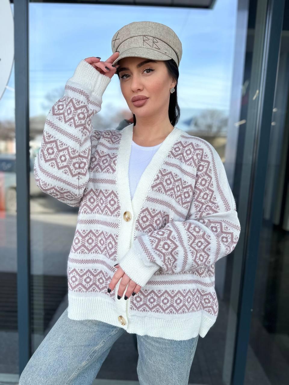 Стильний кардиган машинної в'язки з візерунком